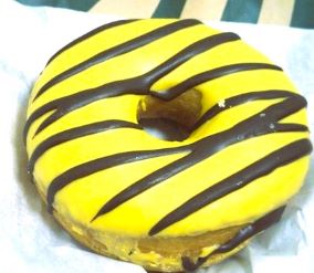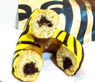さらに、ドーナツ全体を覆う黄色いバナナチョコのコーティングが、バナナ感じと香りと生み出します。